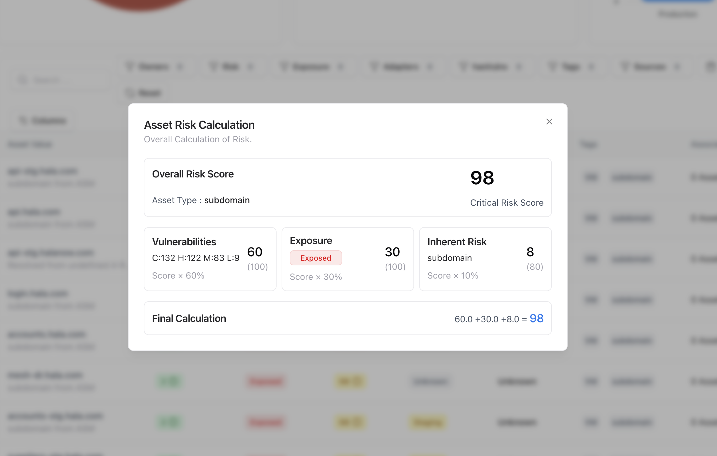 This helps teams instantly prioritize which assets demand attention first — without manual scoring or guesswork.