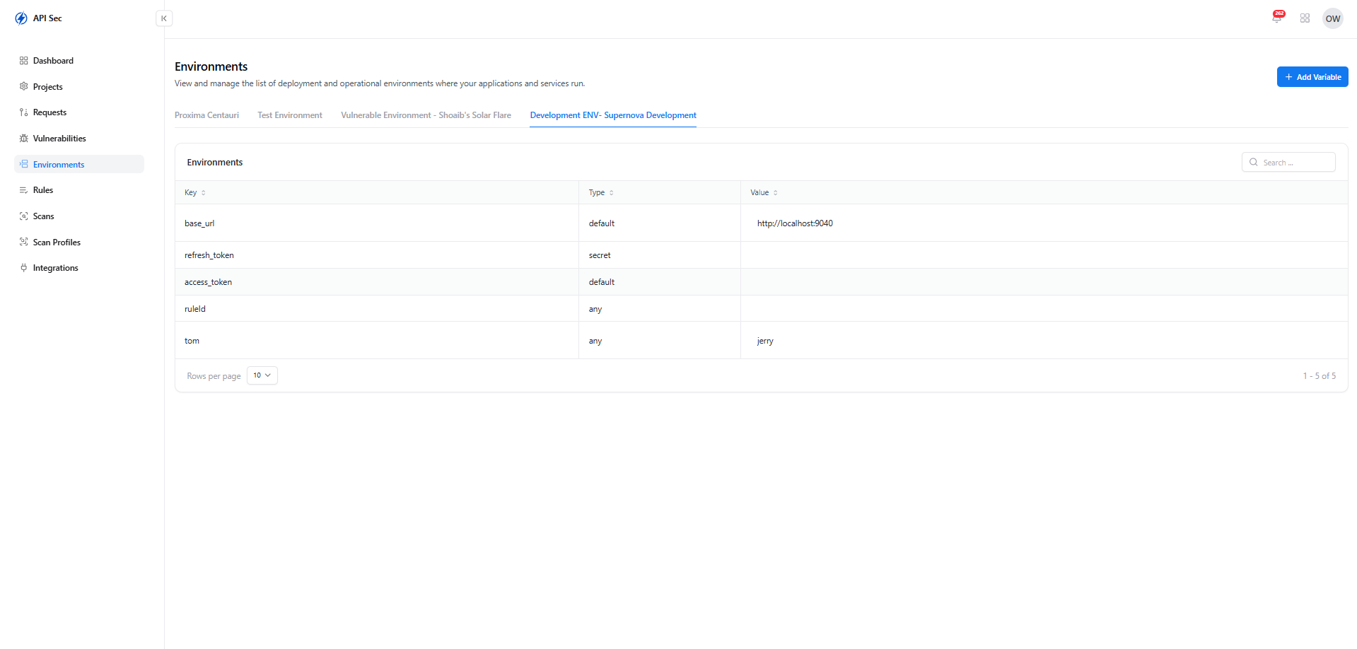 Dynamic Variable Injection ensures that every API request and scan automatically uses the correct environment-specific values.Whether you’re testing against Dev, Test, QA, or Sandbox, variables like URLs, tokens, IDs, and custom parameters are injected in real time — eliminating inconsistencies and improving testing accuracy.