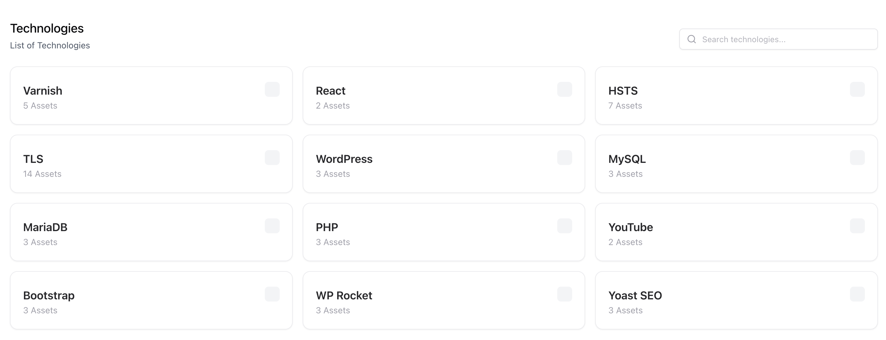 Organize assets by shared technology stacks for easier risk assessment.