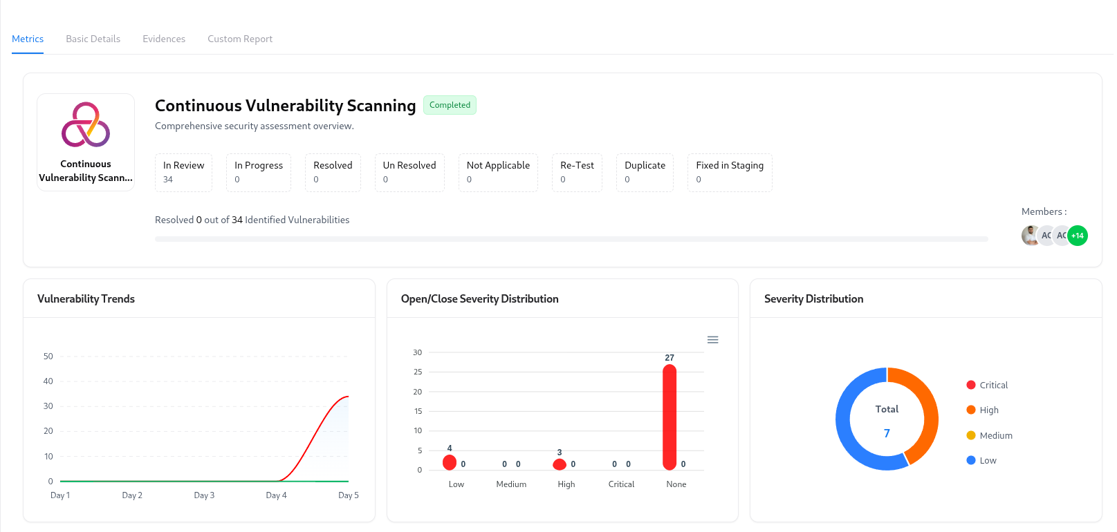 Track each vulnerability’s current lifecycle state — open, in-progress, accepted risk, or resolved.