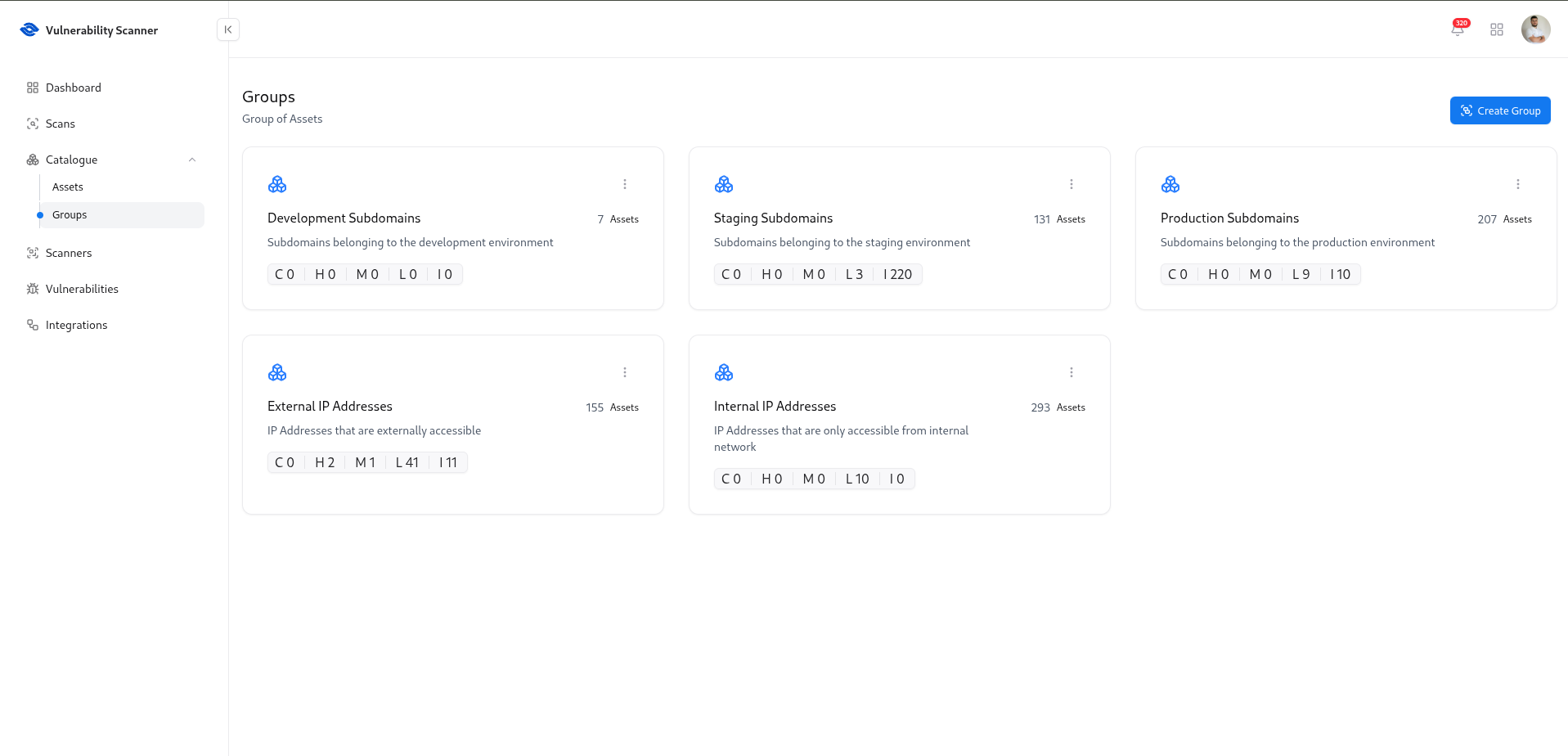 Simplify large-scale vulnerability scanning with structured, environment-aware asset grouping.Group-based workflows reduce operational overhead, improve organization-wide consistency, and accelerate remediation planning.