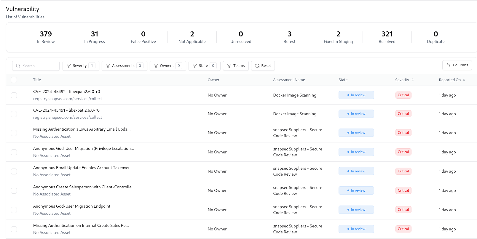 Gain complete visibility and control over all vulnerabilities across your infrastructure.The repository simplifies investigation, accelerates triage, and provides long-term insights that improve your security posture over time.