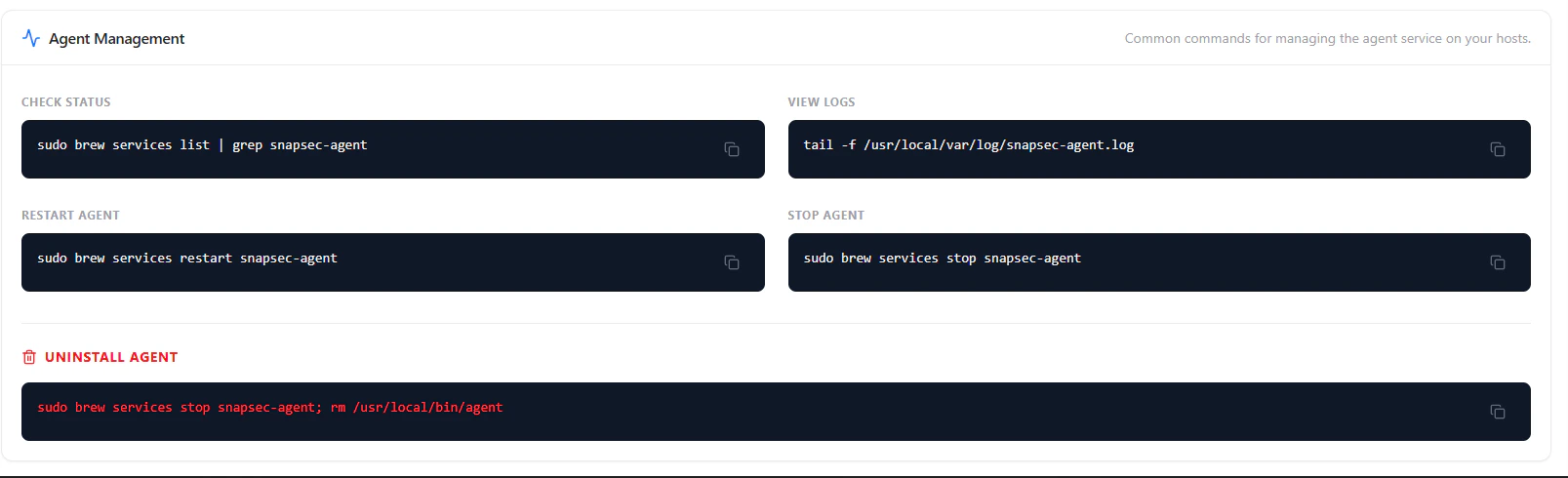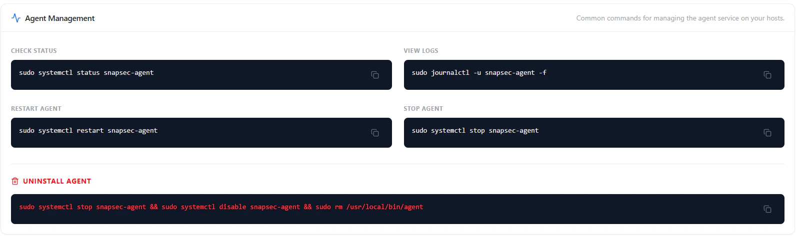 - Uninstall Agent — Remove binary and service