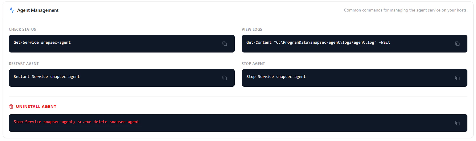 - Uninstall Agent — Remove agent and disable service