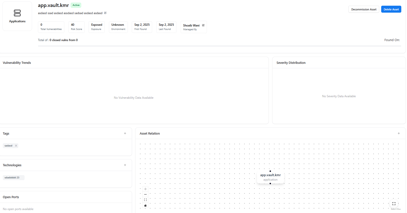 Application Asset Detail View
