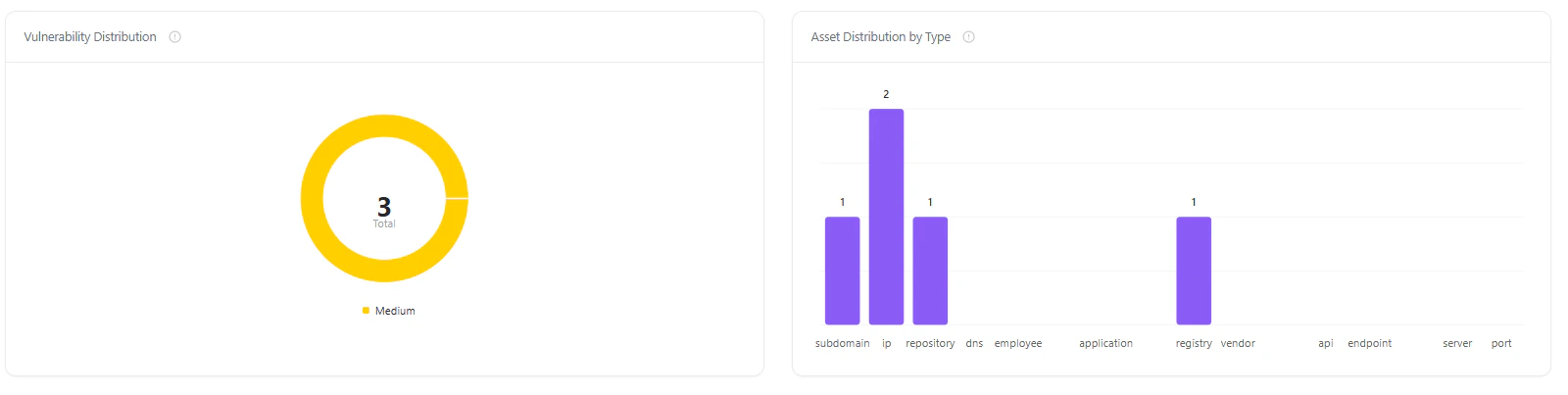 - Asset type distribution (IPs, repositories, subdomains, etc.)