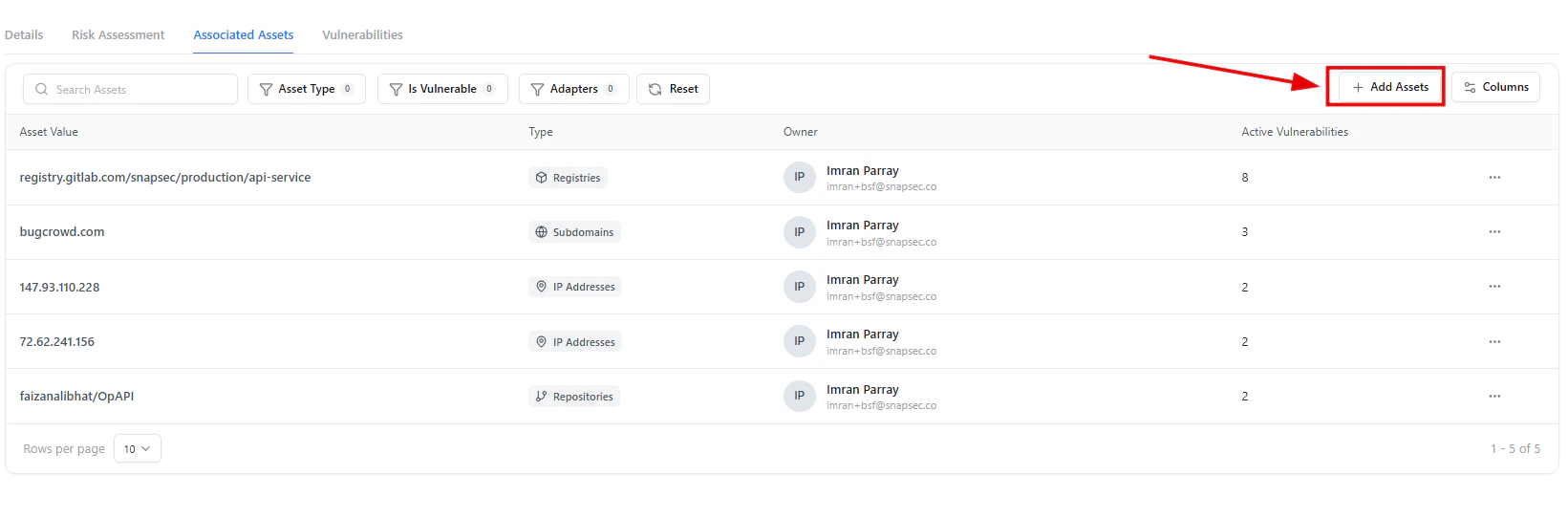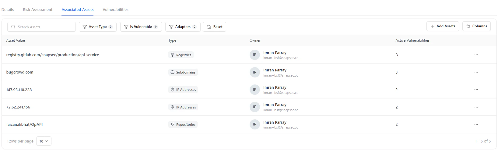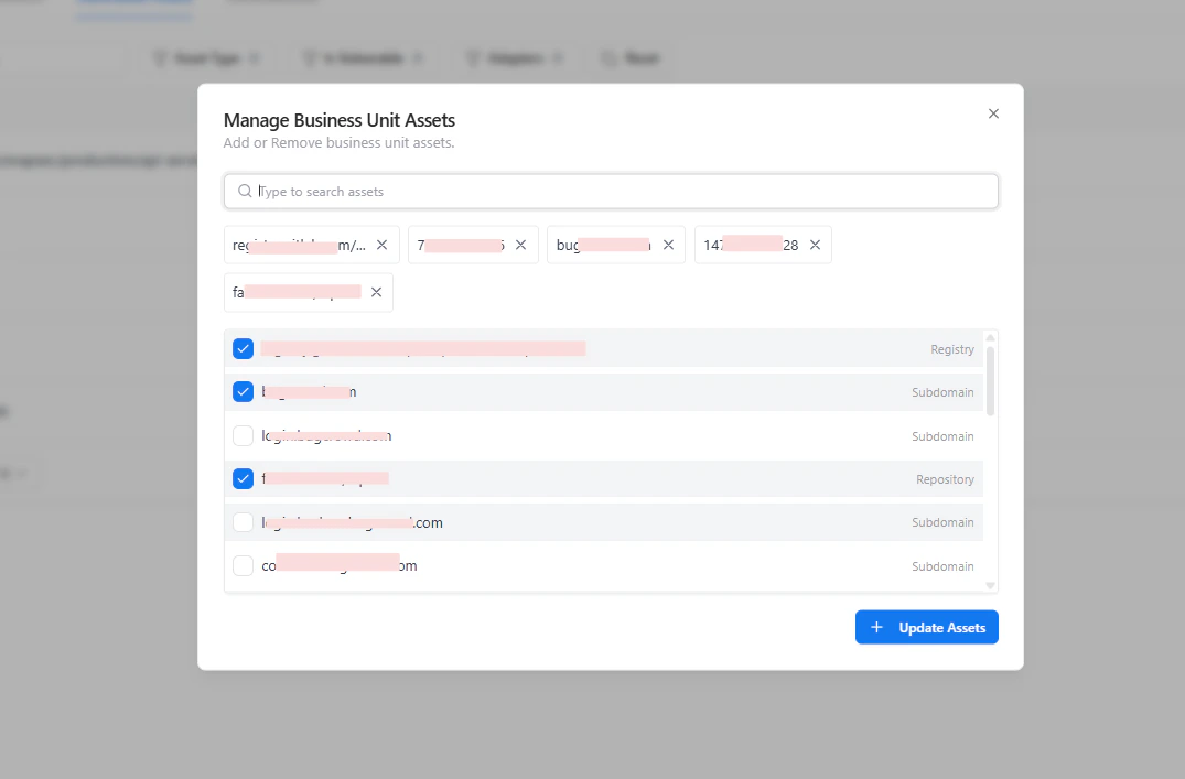 - Asset type (IP, repository, subdomain, etc.)