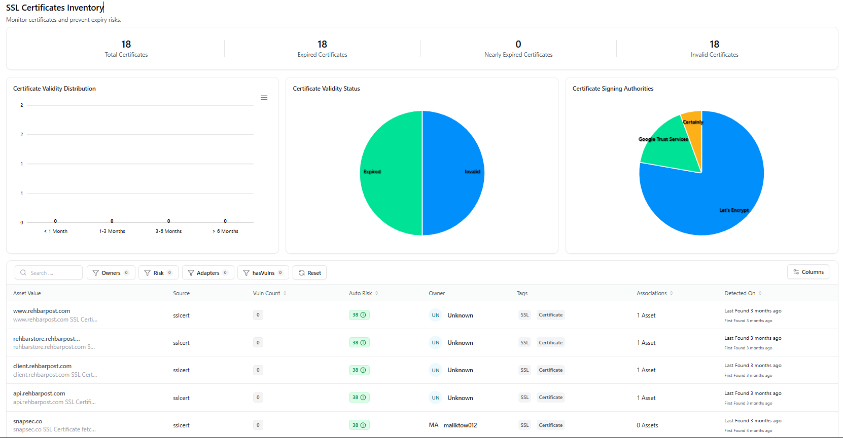 Instantly explore how Snapsec AIM discovers, enriches, and tracks certificates and assets in real time — all without creating an account.