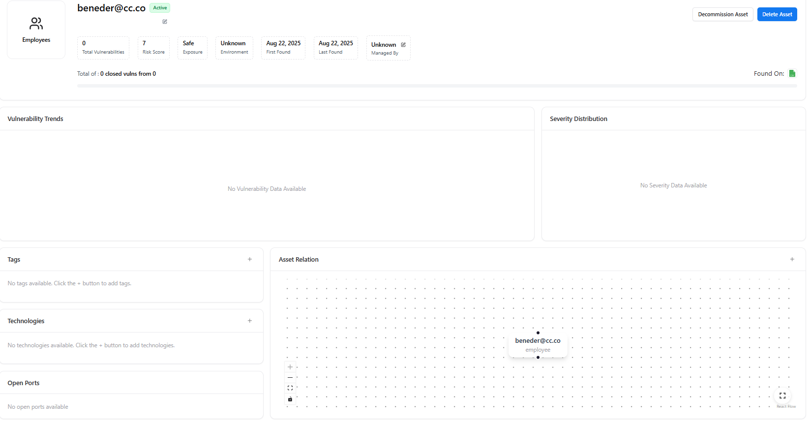 The Asset Relation graph visually maps how the employee identity connects to:- Applications