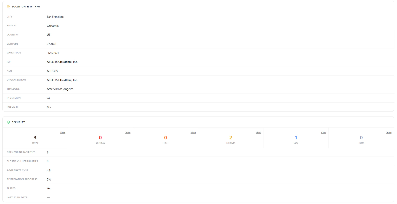 - Severity breakdown (Critical, High, Medium, Low, Info)