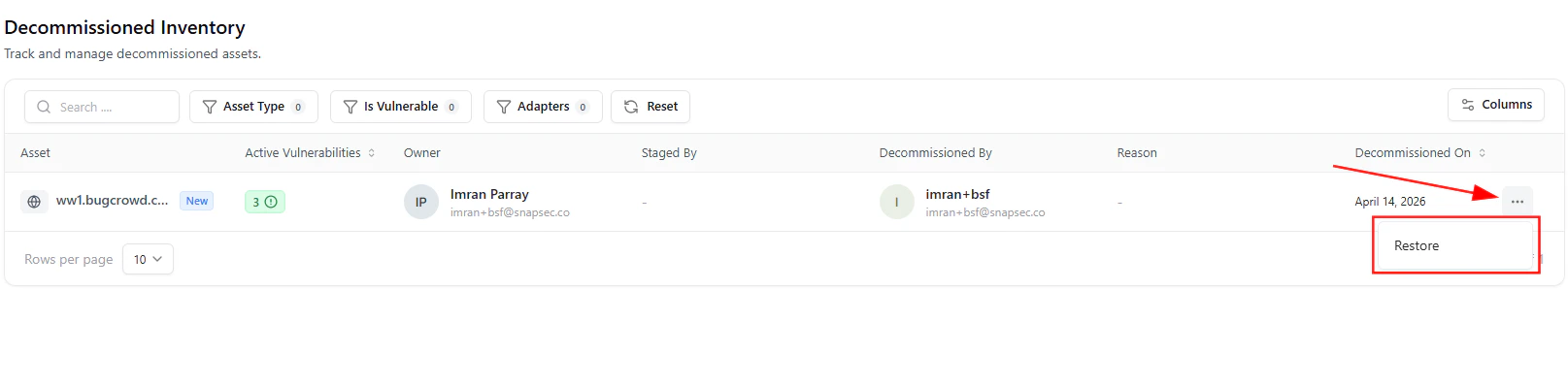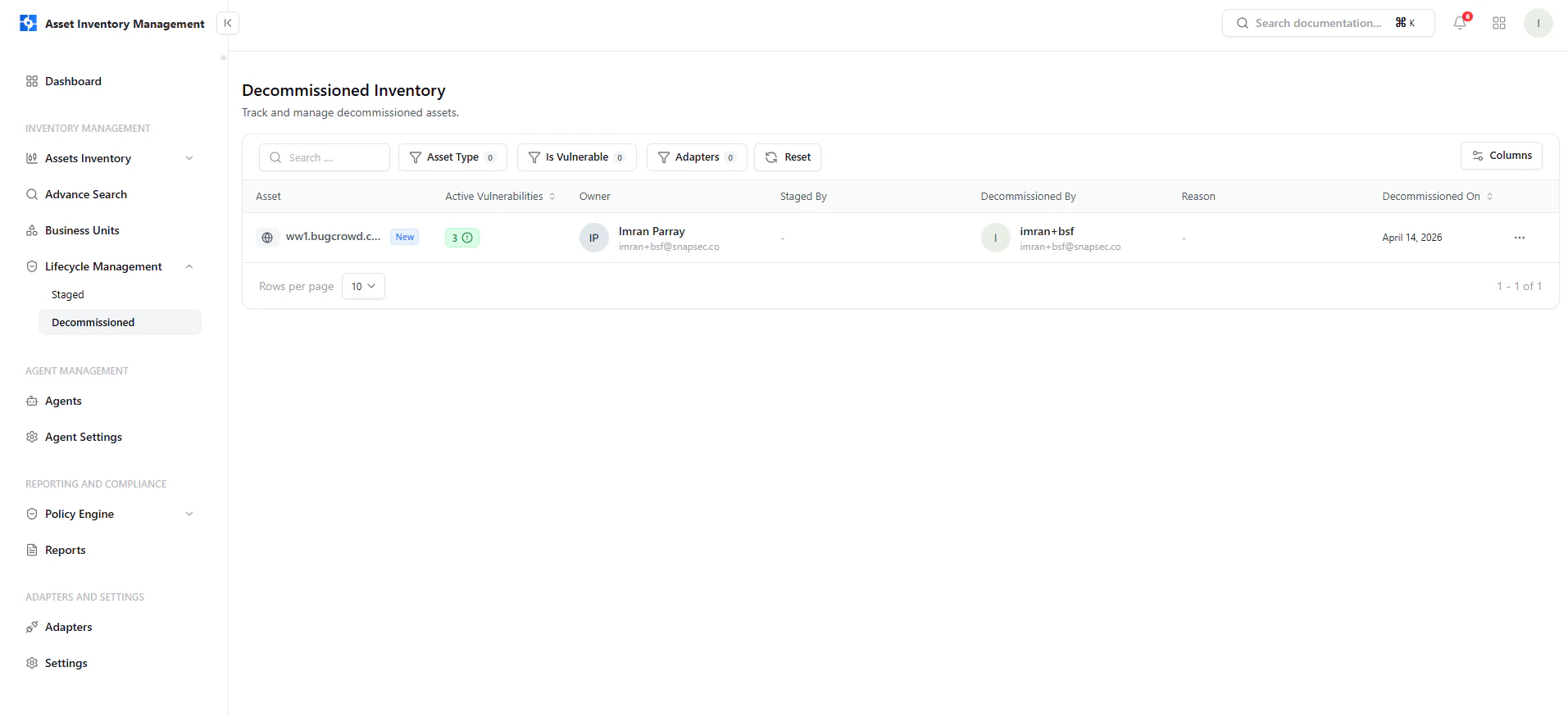 The Lifecycle Management module allows teams to control how assets transition across different operational states — from staging to decommissioning — while maintaining full visibility and context. It ensures assets are never lost, supports recovery when needed, and preserves security and ownership data across the entire lifecycle.Staged Assets