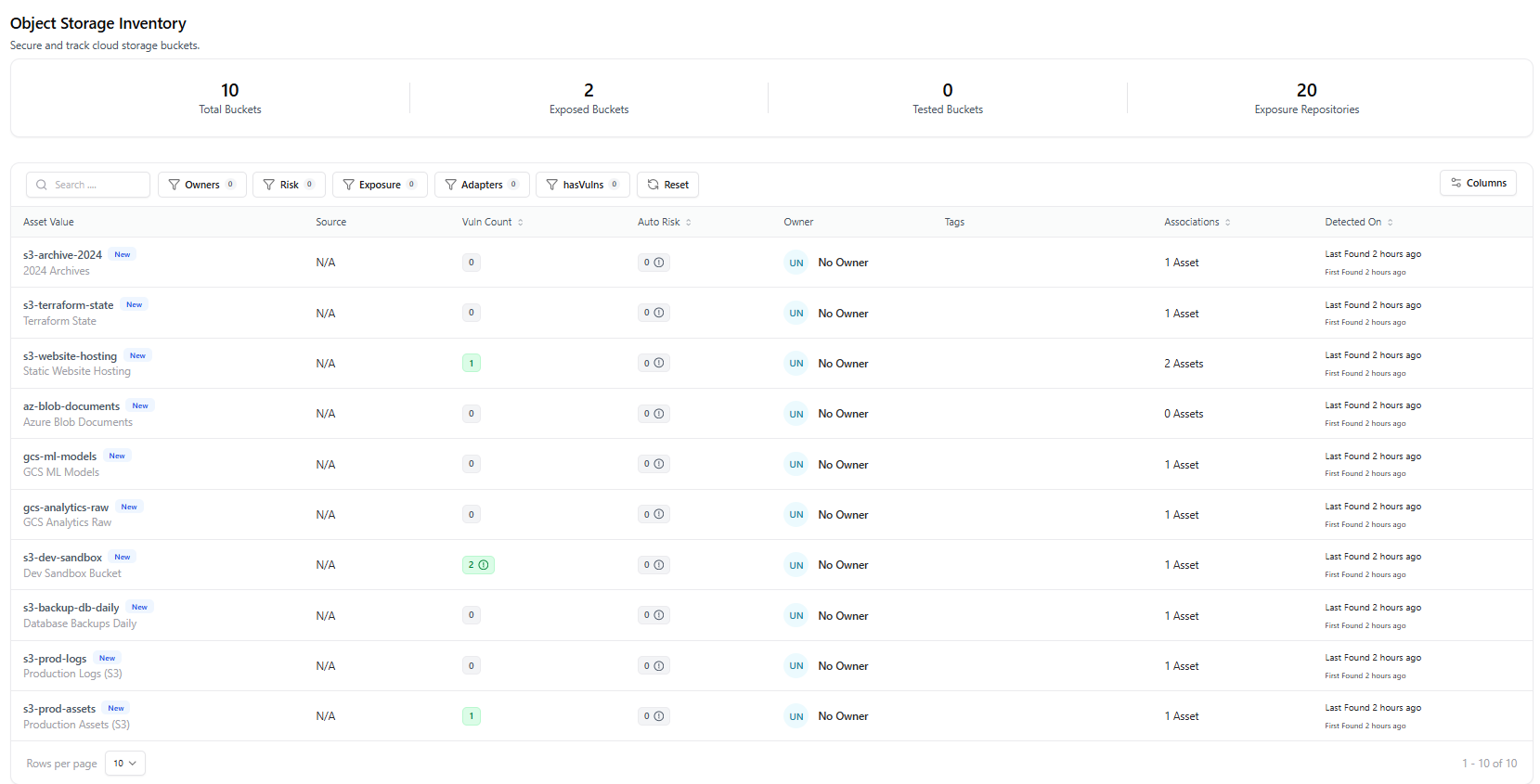 - Exposed Buckets — Buckets that may be publicly accessible or misconfigured