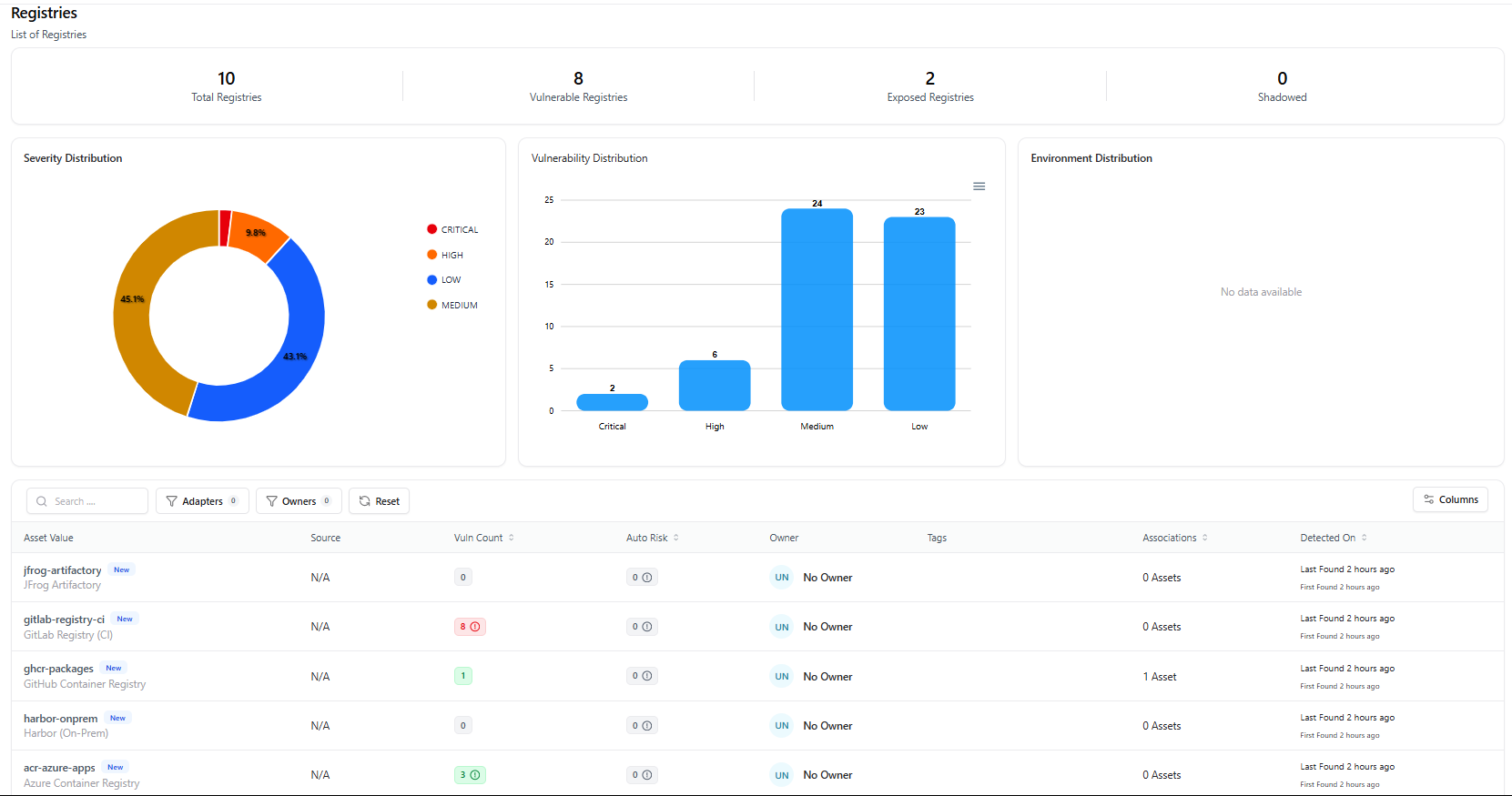 - Total Registries — All detected container registries