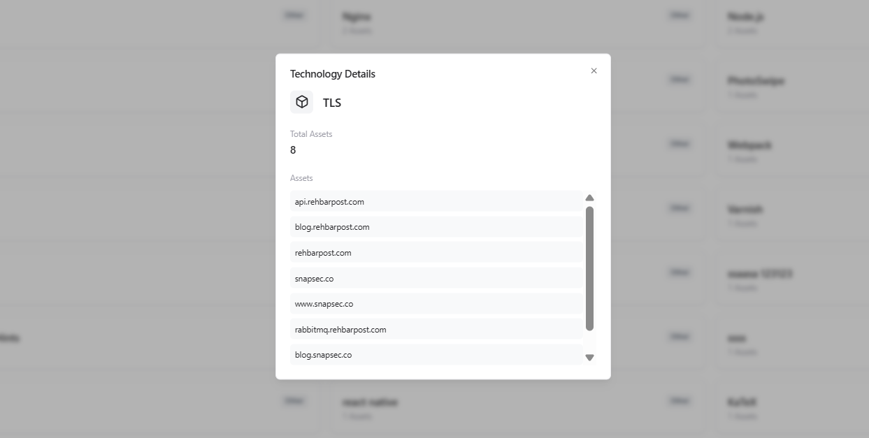 Clicking on any technology opens its Technology Detail view, which provides asset-level visibility.