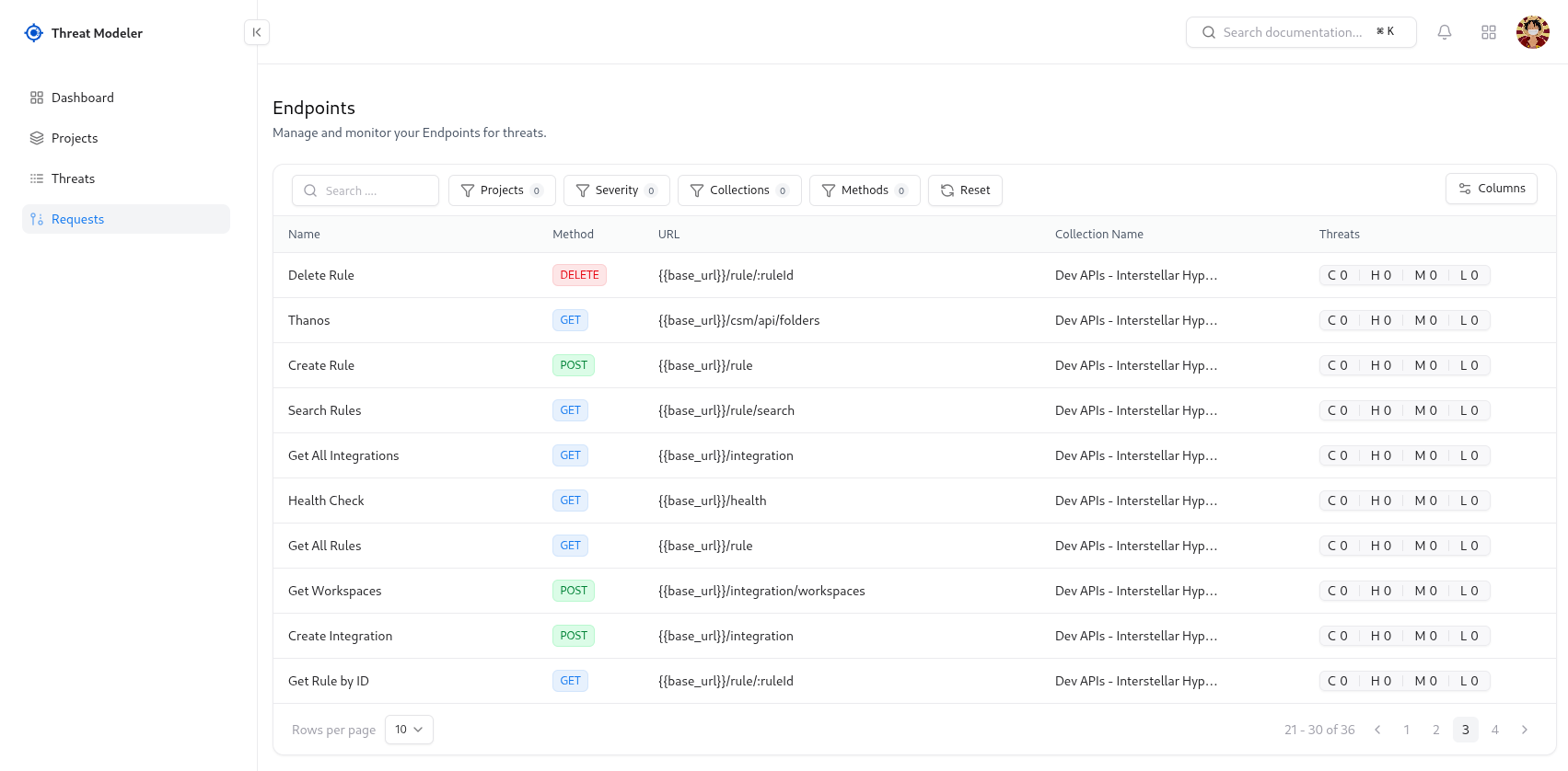 The API Catalog provides a unified registry of every API endpoint discovered across your applications and services. It enables complete visibility into routes, methods, linked threats, metadata, and real-time behavioral insights — powering accurate threat modelling and secure API development.