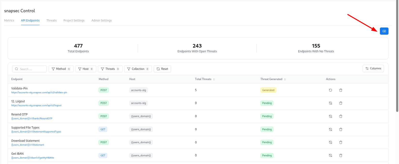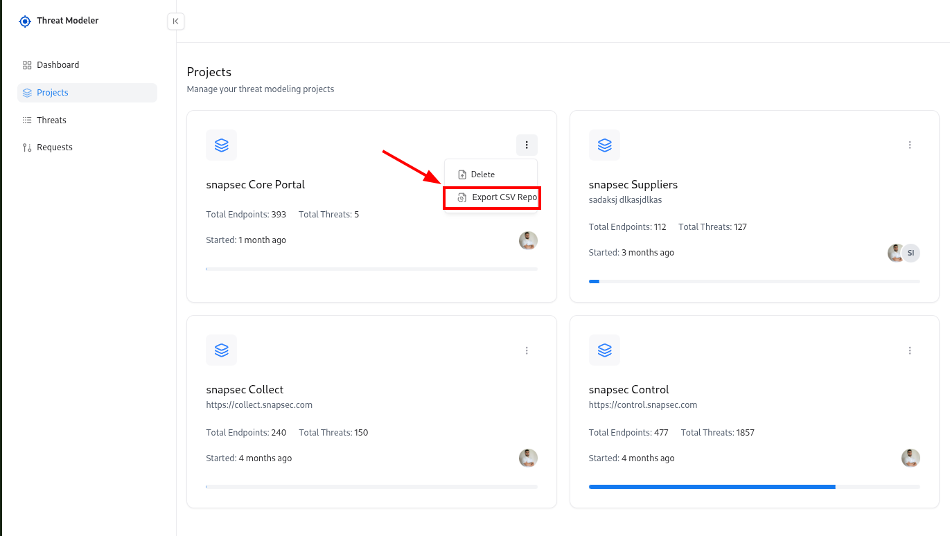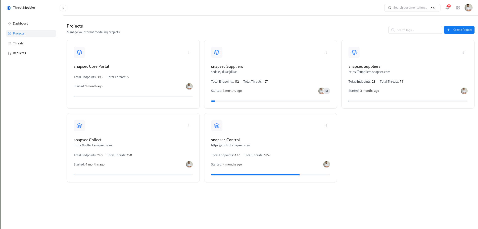 Threat Modeling Projects act as dedicated workspaces for analyzing application components, API endpoints, and security risks. Each project contains:- API endpoint inventory