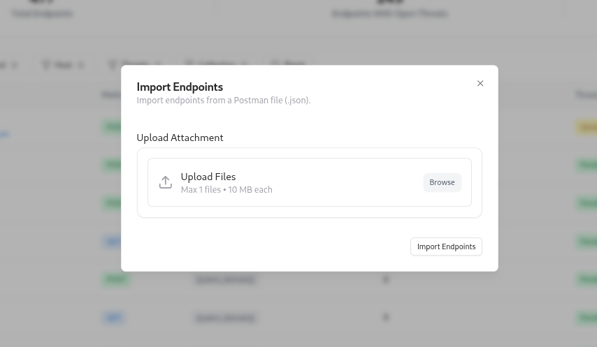 The API Endpoints tab is where you centralize all endpoints for a project. To import endpoints:Upload your source