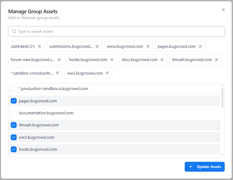 Select assets from the catalogue to include in this group.