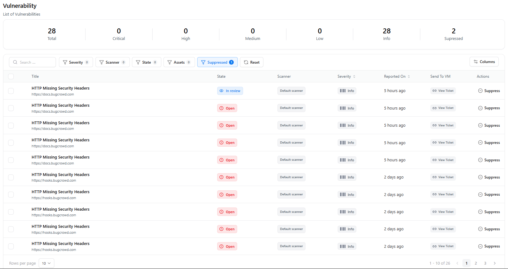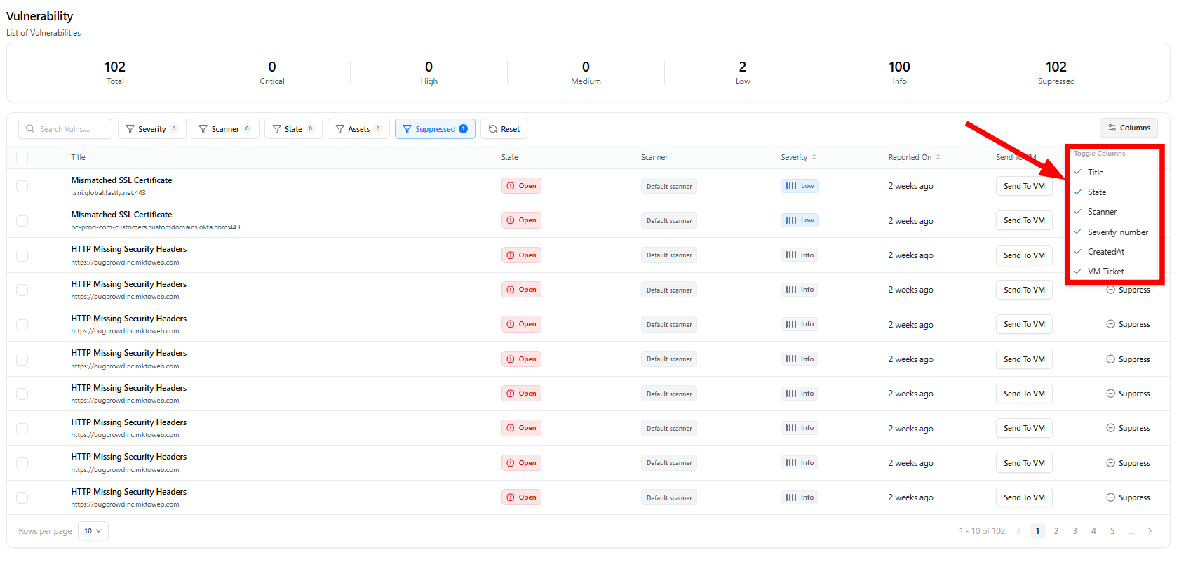 - Send to VM — Option to create a ticket in Vulnerability Management