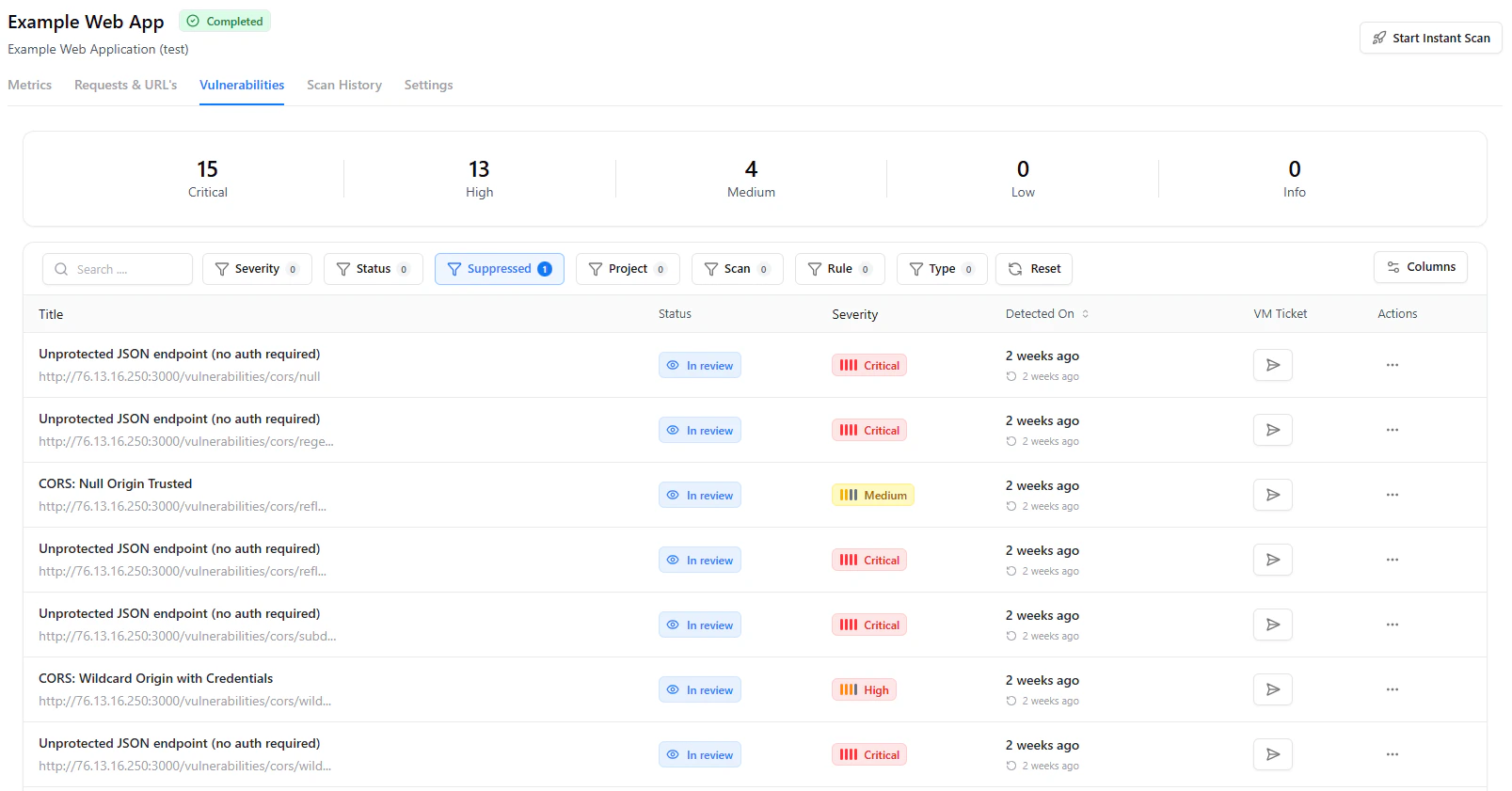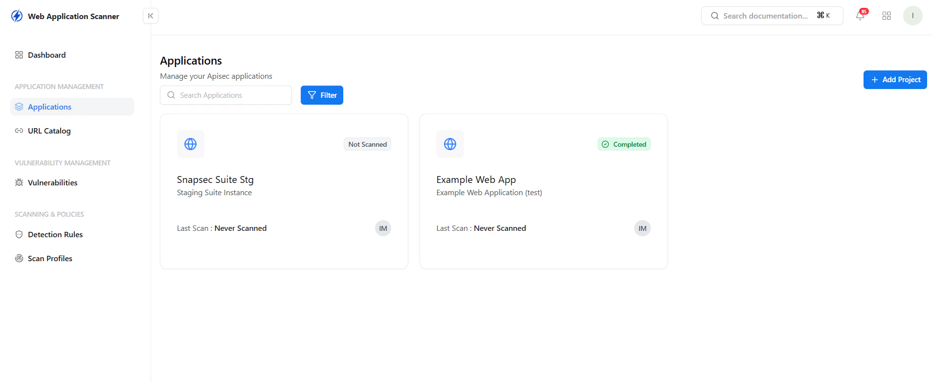 The Applications module is the control center for managing web applications within the Web Application Scanner (WAS). It enables teams to onboard applications, configure scans, monitor vulnerabilities, and track security posture over time.Applications List